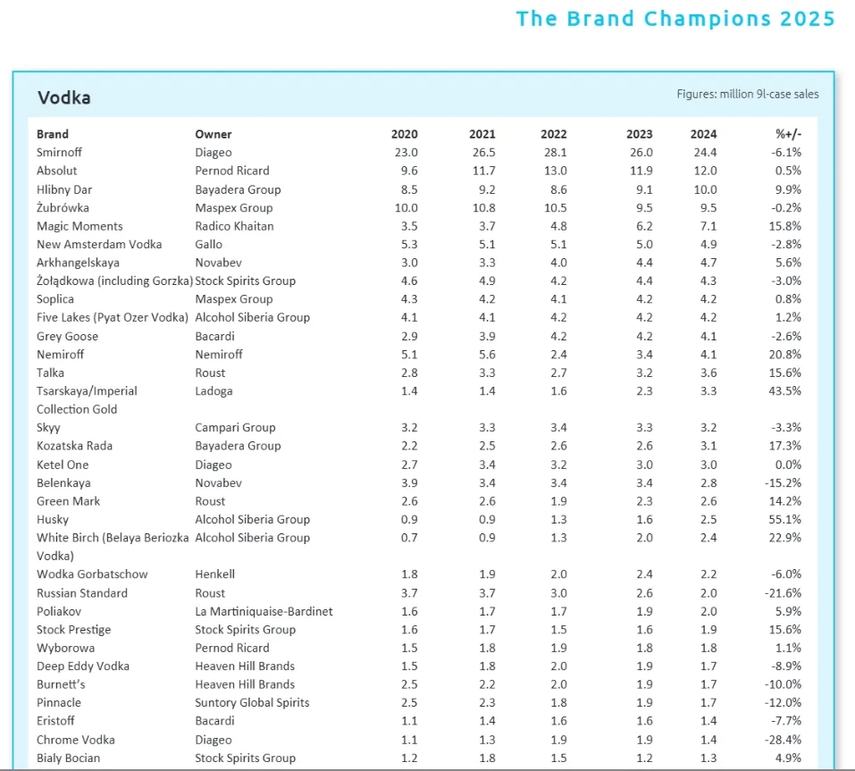 Топ-5 горілчаних брендів світу за версією The Spirits Business 2025:
